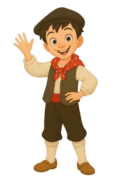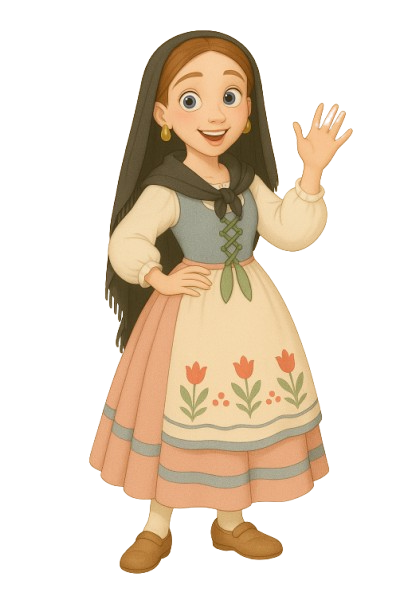 Galanita, la mayor es una niña alegre, soñadora y siempre dispuesta a ayudar. Su abuela le enseñó a bordar y borda flores en sus vestidos mientas escucha sus historias al calor de la lumbre. Tiene un corazón noble y una sonrisa encantadora que transmite paz y tranquilidad. Julianete, su hermano pequeño es un zagal de siete años. De pelo negro azabache, casi siempre despeinado (menos los domingos para ir a misa) y ojos chispeantes que anticipan su siguiente travesura. Siempre anda inventando juegos y aventuras y gastando bromas correteando entre los pinos y los huertos. No pocas veces Julianete acaba metiéndose en líos y arrastrando a su hermana Galanita. Pero su simpatía y buen corazón hacen que nadie en todo Talayuelas pueda enfadarse con él. |